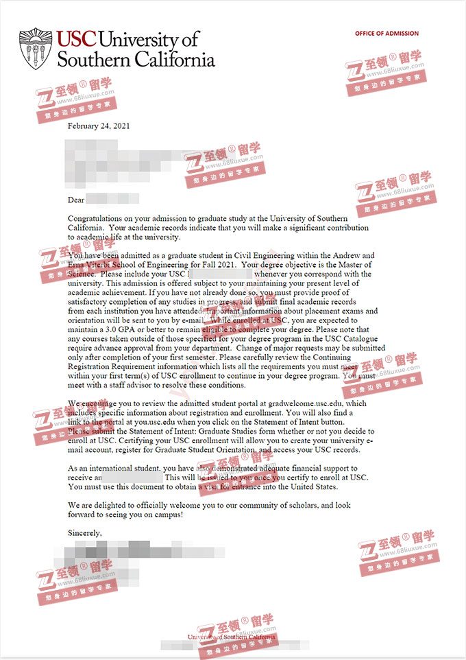 录取结果:USC,Master of Science in Civil Engineering南加州大学土木工程硕士录取