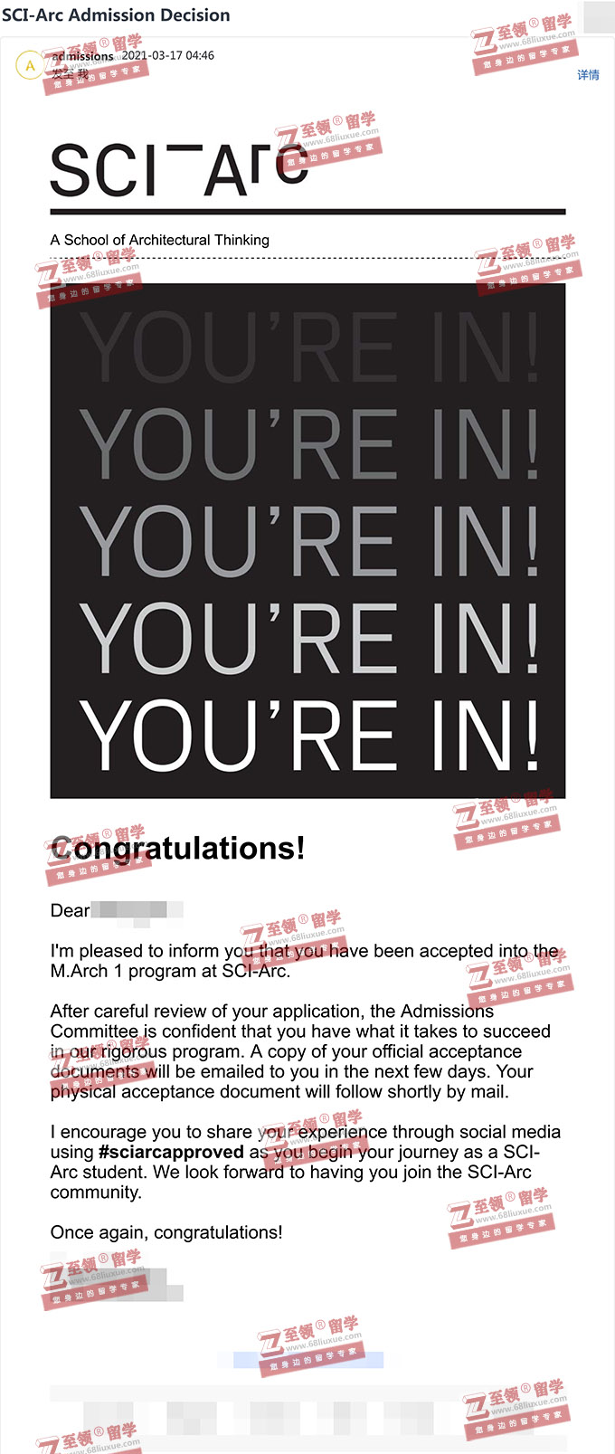 录取结果:SCI-Arc,Master of Architecture I 南加州建筑学院建筑学硕士录取