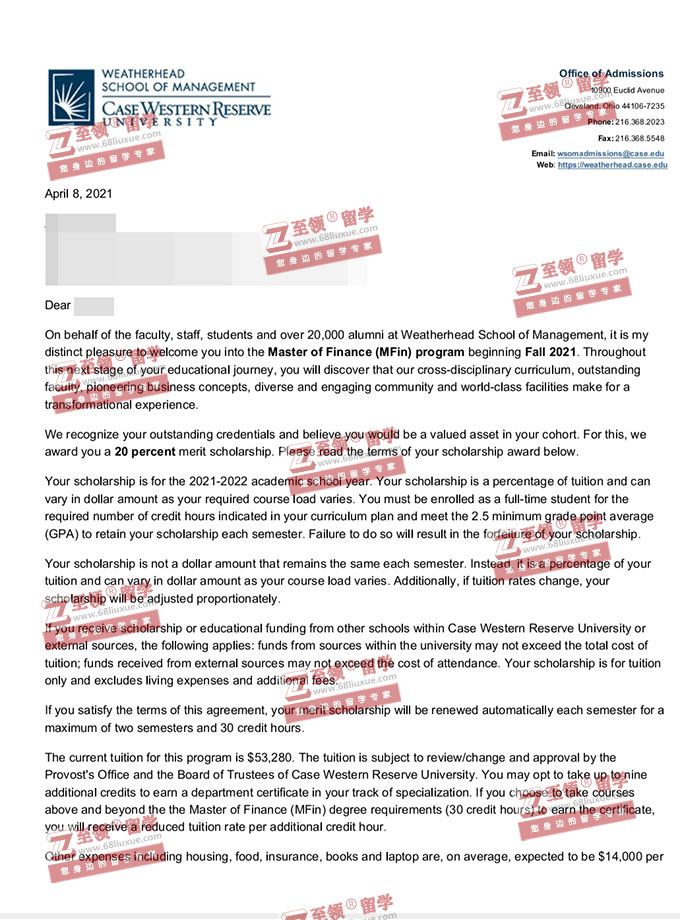 录取结果:Case Western Reserve University,MSM- Finance凯斯西储大学金融硕士录取,奖学金$10656