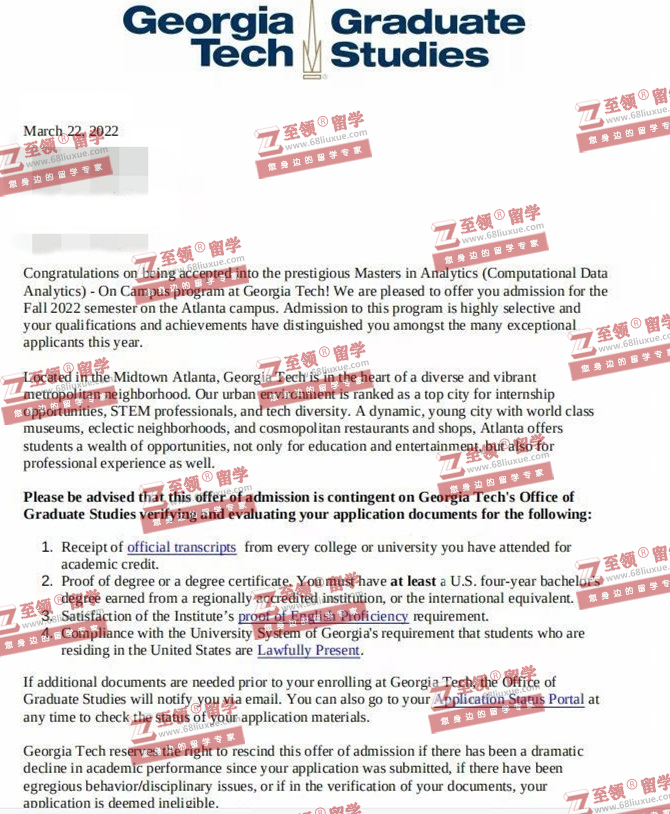 录取结果:Georgia Institute of Technology,MS in Analytics 佐治亚理工大学分析学硕士录取