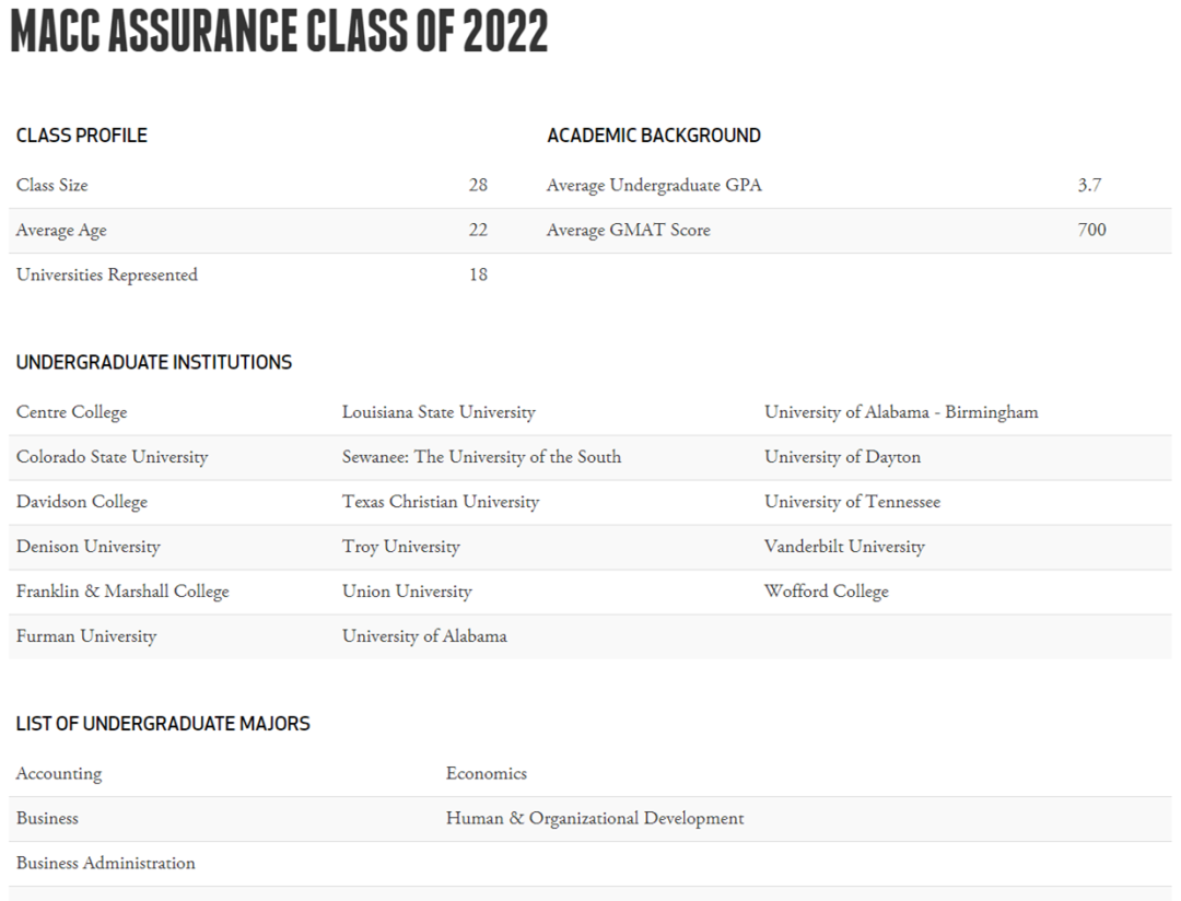 范德堡大学会计硕士Assurance方向2022届招生数据要点如下: