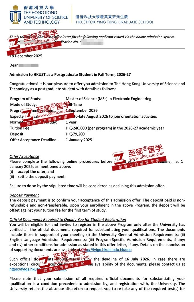 港科大EE硕士以“前沿技术研究+行业应用”为特色,M同学的文书材料中明确表达了对“智能通信”方向的兴趣,还引用了教授在该领域的研究成果(比如5G通信优化技术),展现出他对项目方向及学术资源的深入调研,增强申请的说服力。在至领留学团队的帮助下,M同学非常顺利地获得港科技EE硕士录取。