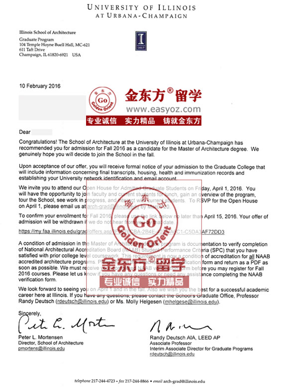 录取结果:伊利诺伊香槟分校建筑学专业硕士