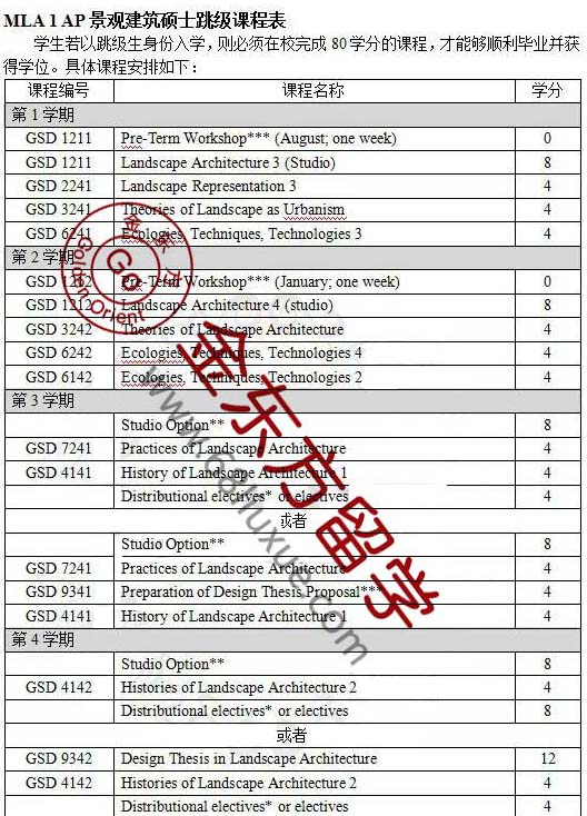 TIPS:A、学生必须选修一门有景观建筑系开设的工作室选修课(studio option)。