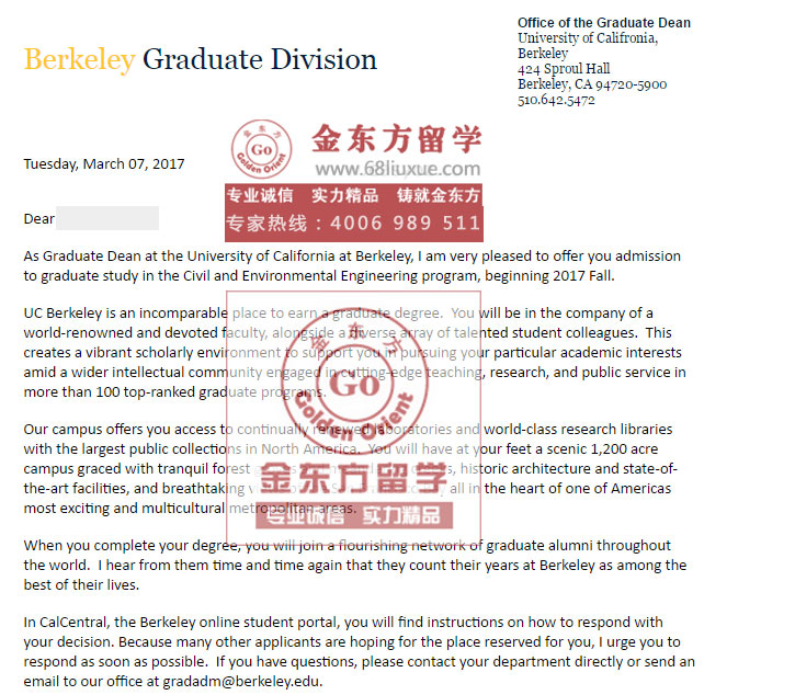 录取结果:University of California at Berkeley(加州大学伯克利分校), MS in Civil and Environmental Engineering