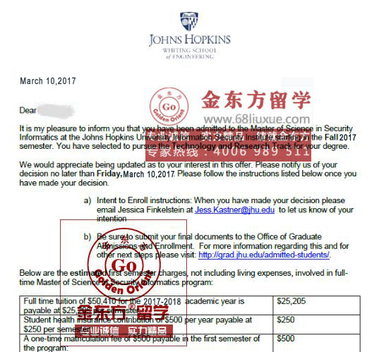 录取结果:Johns Hopkins University约翰霍普金斯大学,Masters of Science in Security Informatics(MSSI)信息安全硕士