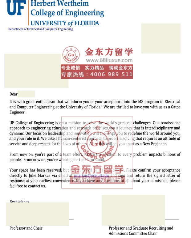 录取结果:University of Florida佛罗里达大学,MS in Electrical and Computer Engineering电子与计算机工程硕士,奖学金+$4500
