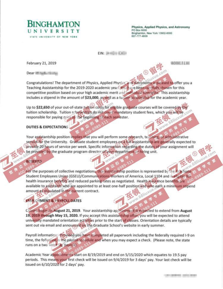 录取结果:SUNY Binghamton Ph.D in Physics 免学费+TA,总奖学金$45,650/年