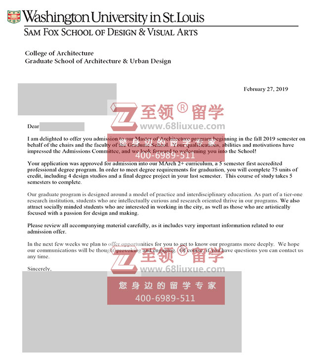录取结果:圣路易斯华盛顿大学,Master of Architecture录取