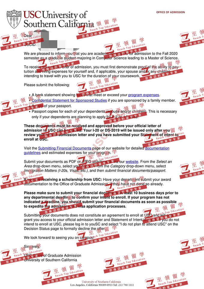 录取结果:University of Southern California,MS in Computer Science南加州大学CS硕士录取
